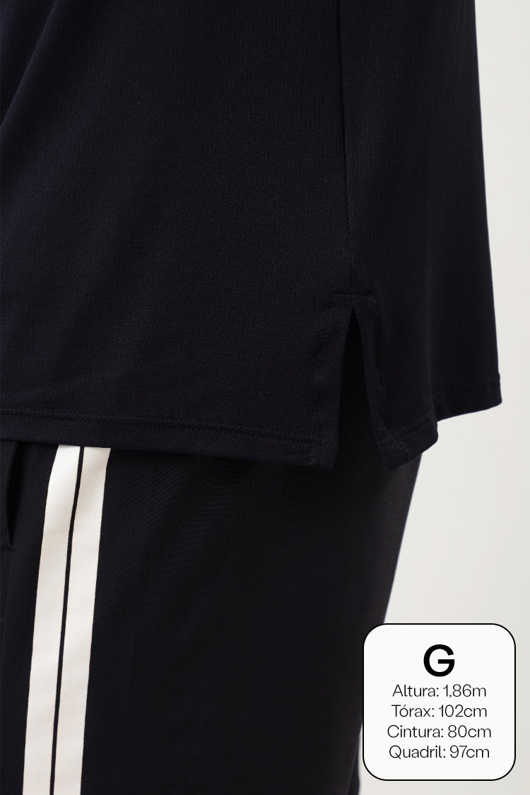 Modelo veste tamanho G. Altura: 1,86m | Tórax: 102cm | Cintura: 80cm | Quadril: 97cm.